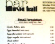 However, the confusion about how to make written sense didn't just stop at the blackboard. Consider the menu's breakfast offering: