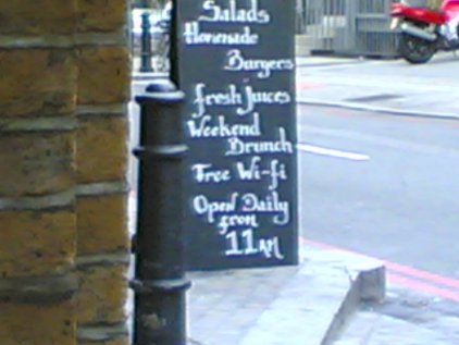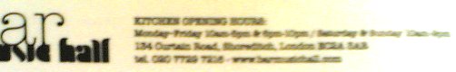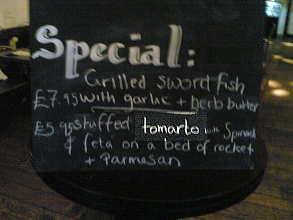 While waiting for the doors to open on what turned out to be a fairly ill-fated gig in Shoreditch, my eyes wandered around the "Music Hall Bar" just round the corner from the venue. First to catch my gaze was the specials menu: